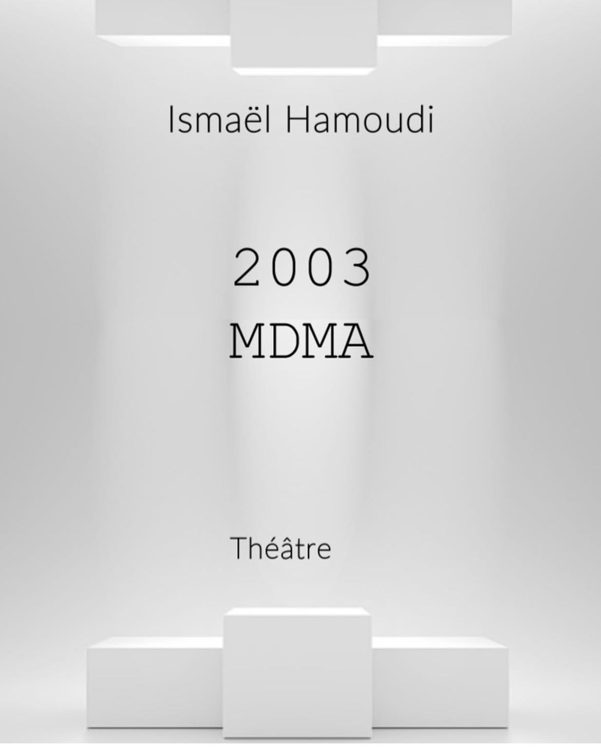 2003 MDMA est une pièce de théâtre qui suit un groupe d’amis aux prises avec leurs contradictions, leurs blessures et leur volonté de quête d’évasion. À travers une écriture brute et fragmentée, le texte capte l’intensité de leurs expériences, entre nuits d’ivresse, souvenirs refoulés et relations brisées.